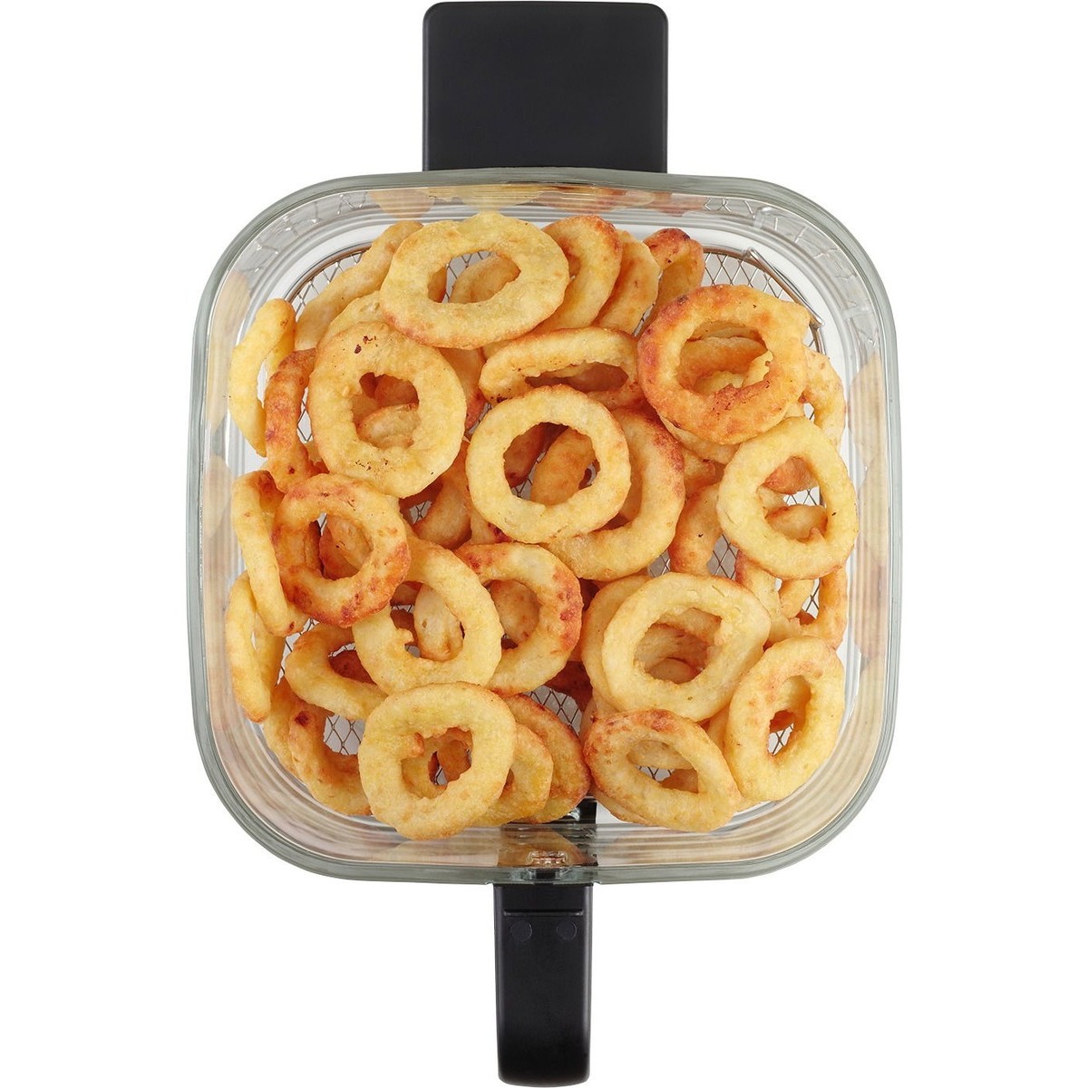 A fritőz tartós, 5,5 literes, boroszilikát üvegből készült sütőkosárral van felszerelve. Ez az átlátszó kosár lehetővé teszi a sütés folyamatának nyomon követését a készülék kinyitása nélkül. A kosár könnyen tisztítható, karc- és szagálló, és a kétoldalas hűvös fogantyúknak köszönhetően kényelmes és biztonságos kezelést biztosít.